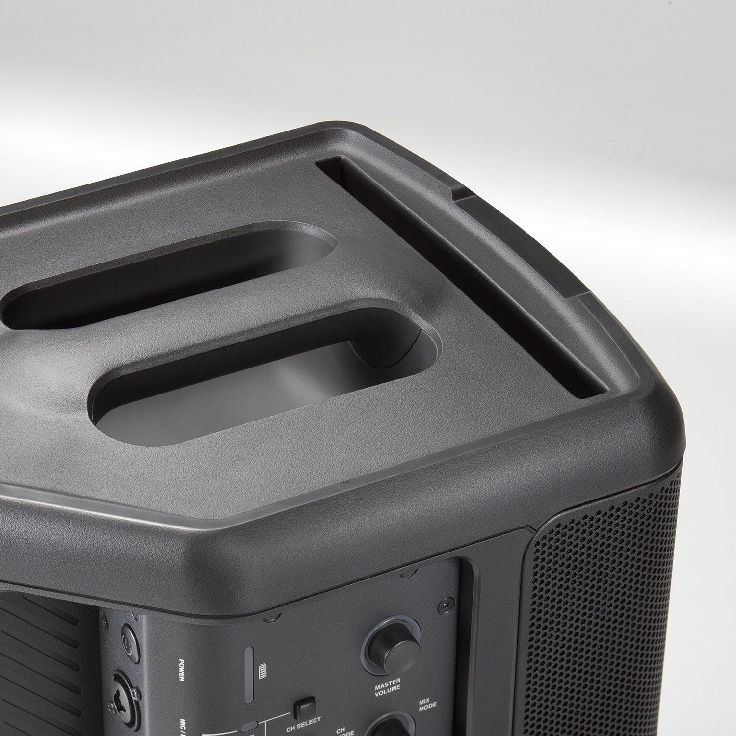 It may be small enough to carry in one hand, but it packs a major punch: You will be amazed at the 112 decibels of rich, crystal-clear sound produced across the entire range of this ultra-compact system, with deep, uncompressed bass, even at the highest output levels. Its 8-inch woofer extends low-end response to 37.5 Hz—nearly an octave lower than other PAs in its class.